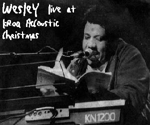 NO-FI "MAGAZINE"Wesley really started to hit fame when he gained fans such as NIRVANA, PEARL JAM, BEASTIE BOYS, as well as countless others. Curt Cobain gave a copy of some of Wesley Willis' songs to Bobcat Goldwait, who became a fan and then gave a copy to Los Angeles KROQ 106.7 fm DJs Kevin and Bean, who began to play his songs on their morning show...it all grew from there. He played at KROQ's 1995 KROQ Acoustic Christmas and now he has a four record deal with Rick Rubin's American Records (Formerly DEF JAM RECORDS). I recently set up a show for Wesley who has been touring across the country with the metal band FIASCO who have recorded an album with him as well as back him up on his live music. They are a very professional band and were very cool people on top of that. I was going to conduct the interview with the entire band but they were tired after the show which took place on Thursday, March 21st at The Impala in Los Angeles. The bill consisted of THE WESLEY WILLIS FIASCO, BUDDHA KNIEVEL, and DON KNOTTS OVERDRIVE. It was a good show for everyone and Wesley made a lot of money as did the club as tons of people filled up the small club/coffeehouse. So Wesley was very kind in sitting down with me as we did this interview. (But, hey...I did set up the show! YAY!)