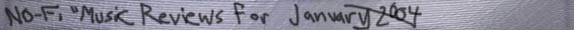 Generally, we like to receive 2 copies of everything (1 for review and one for possible airplay on No-Fi "Radio"). Please do not send original masters, nor any payola (we do like stickers and any other promotional materials though). DO NOT send us MP3s via e-mail. We would accept them on CD or zip disc, but our e-mail accounts can not handle the size of MP3s at this time.