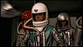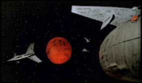 Throughout, we're treated to plenty of dramatic tension as astronauts have to go on dangerous spacewalks to... um... do... stuff... and, uh... yeah. The strings are hard to miss as these hapless actors (I mean, adventurers) flail around in front of curtains with holes poked in them (for the stars, see.) And yeah, that's really about it. Once they get to the evil planet, things get a bit more interesting, as they discover this planet may be alive. Or, I think it's a big heart, with tentacles. Or, something like that. Excited, kids?