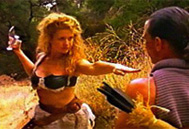 One interesting thing is that even though this is supposed to be set after World Ward III, it's interesting that women are still able to get bad boob jobs. Perhaps the likelihood of having a bad boob job is much more likely in a post WWIII world, but my point is how are people able to get them at all? Also is this film set in the Amazon? It's always weird when women
