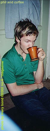 (Most of the boys are drinking coffee now and everyone seems pretty tired and a bit silly)